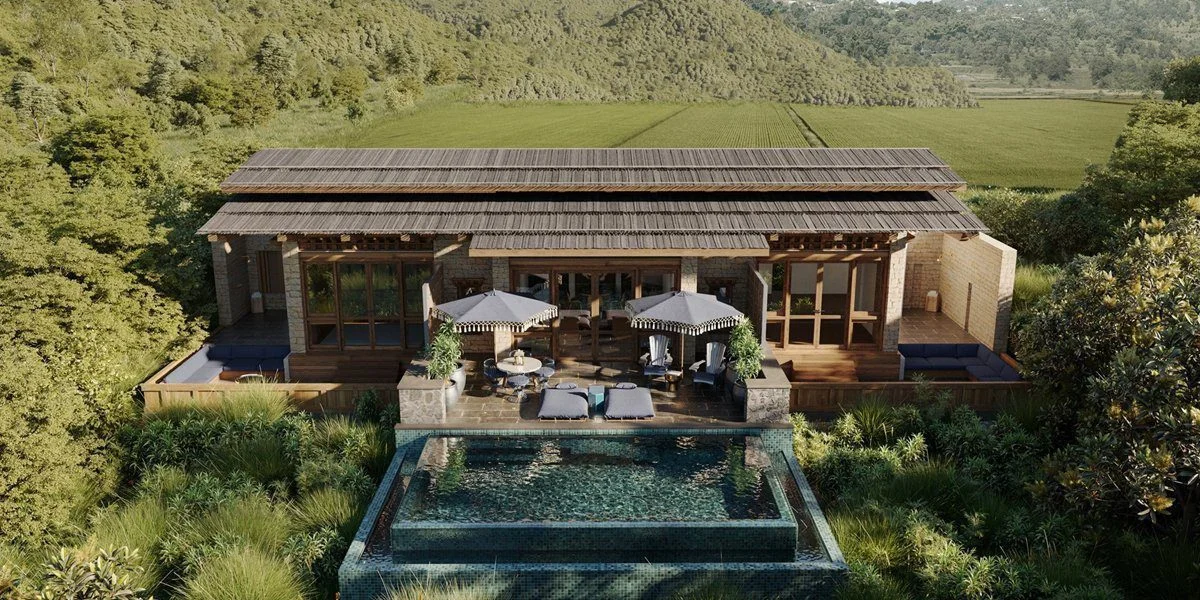 The traditional Bhutanese-style suites, each with its private balcony overlooking the river and valley, provide the perfect setting for relaxation and tranquility.